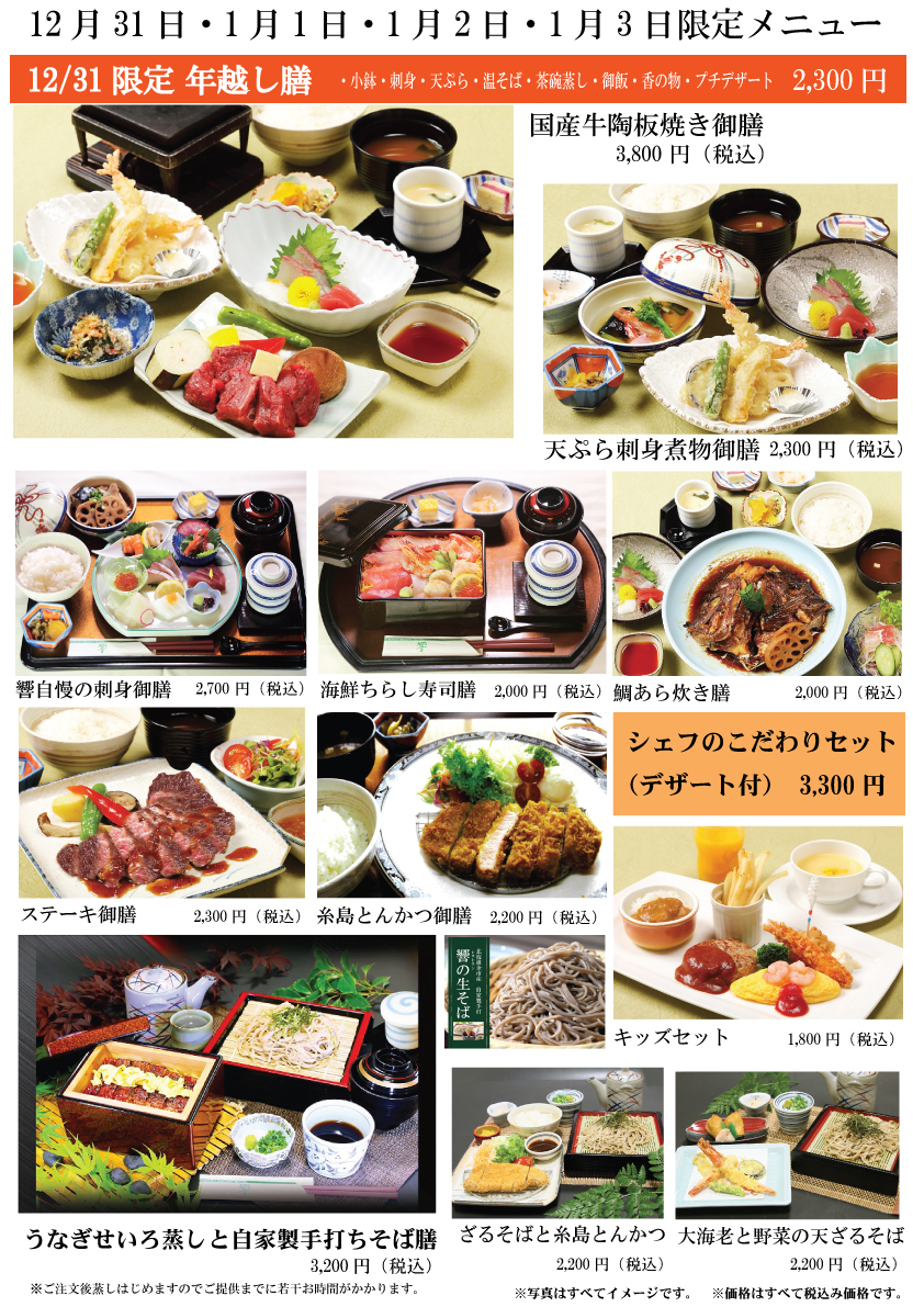 | 1/1(木) | 昼:営業いたします。 | 夜:営業いたします。 |